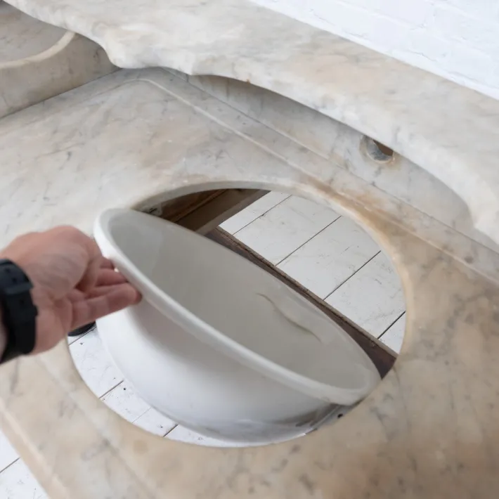 Removable marble top.
