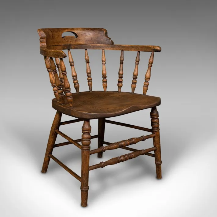 This is a superb antique smoker’s bow chair, with attractive colour and fine English craftsmanship. Solid joints and construction, delivered waxed, polished and ready for the home.