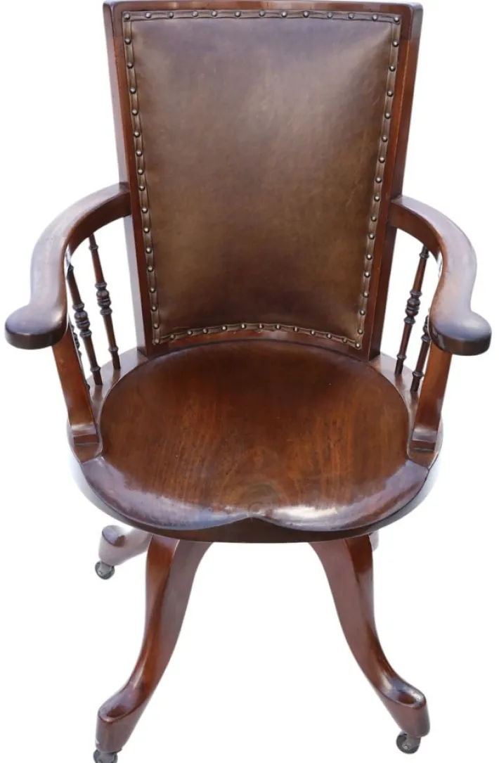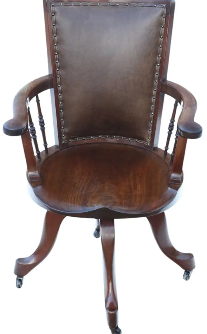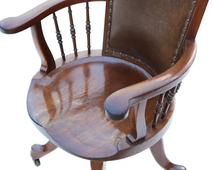 A rare opportunity to acquire a c.1900 mahogany swivel desk chair, offering timeless style, functionality, and decorative appeal.