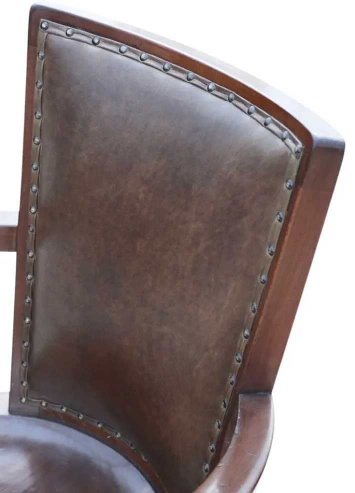 A very rare antique mahogany swivel desk chair, dating from around 1900. This characterful piece features a later-added quality leather back, combining comfort with classic design. Full of age, charm, and patina, it would make a striking addition to any office, study, or library.