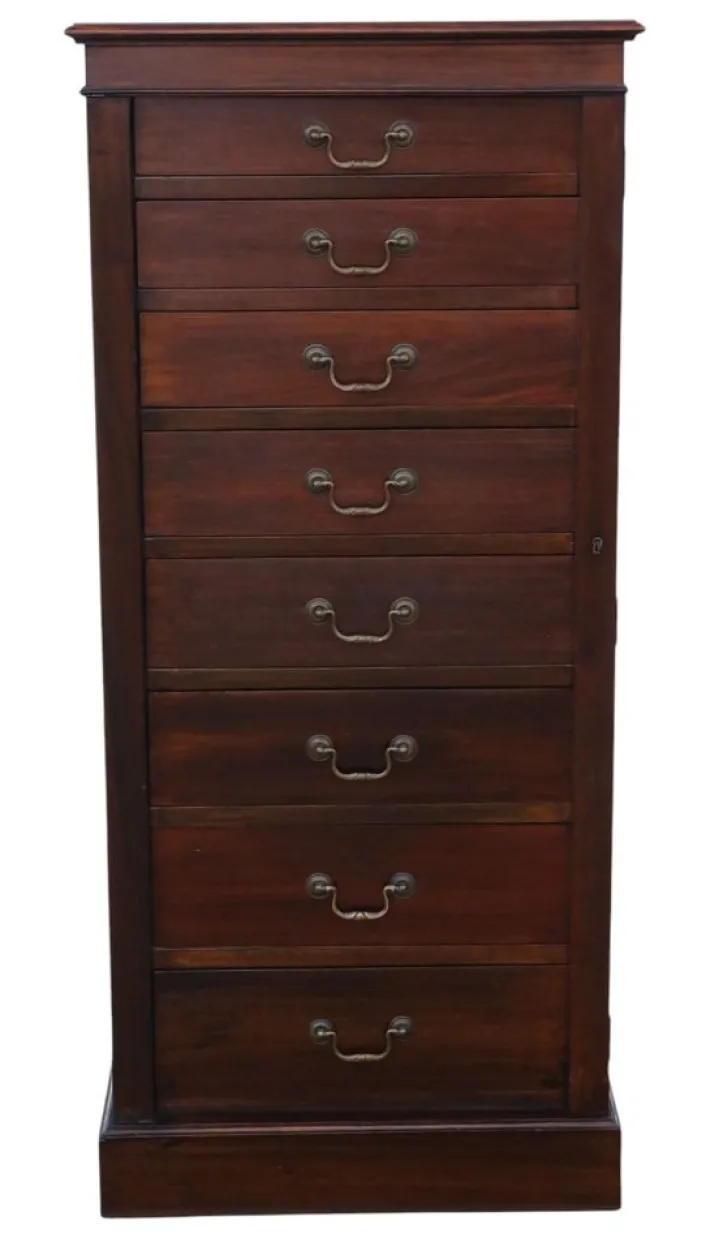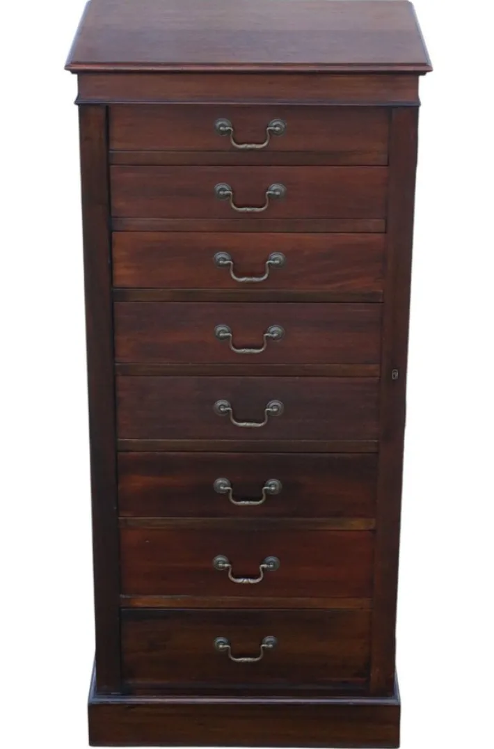 A fine mahogany Wellington chest, dating from circa 1915. with its elegant clean lines and warm patina, this tall chest offers both decorative appeal and practical storage across eight drawers. A rare and desirable piece of functional antique furniture.