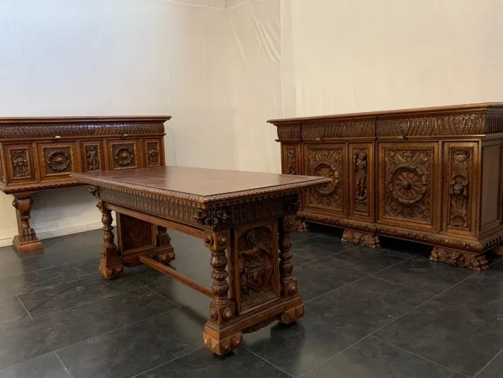 Composed of: 224x62x121H studio sideboard, 183x50x132h serving sideboard, 185x83x82 table.
