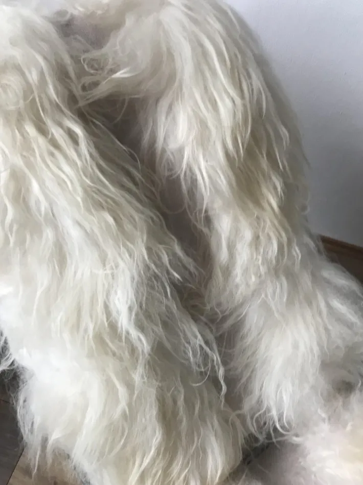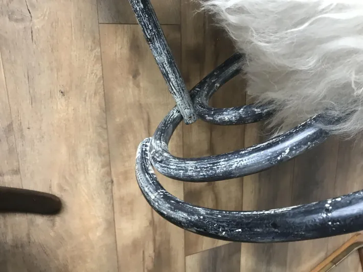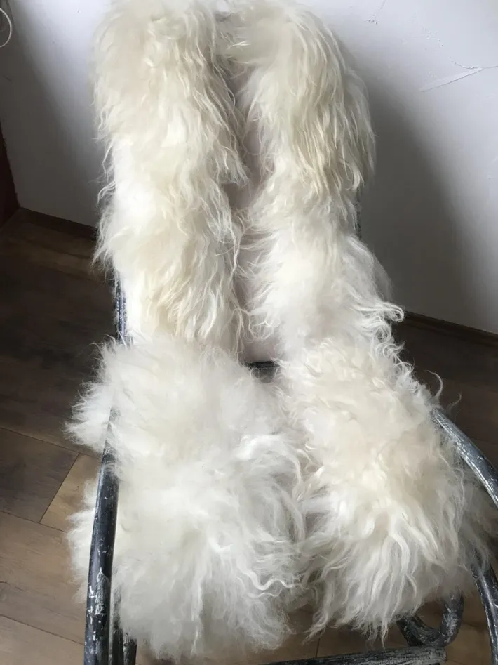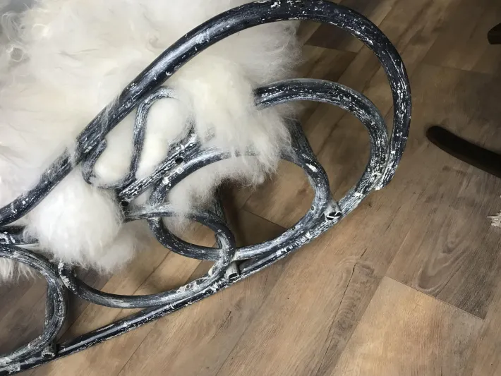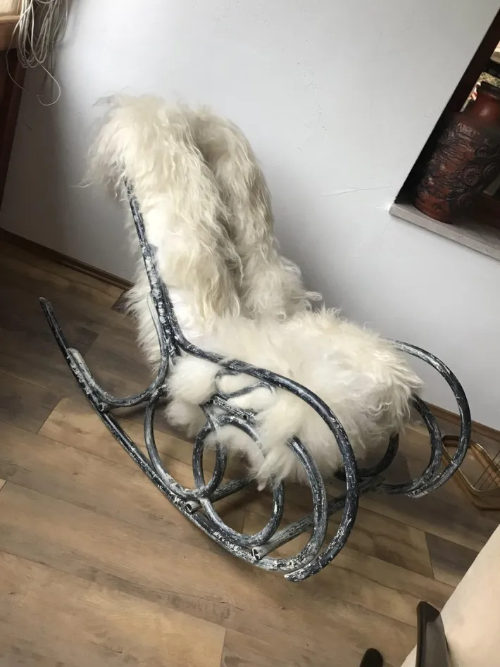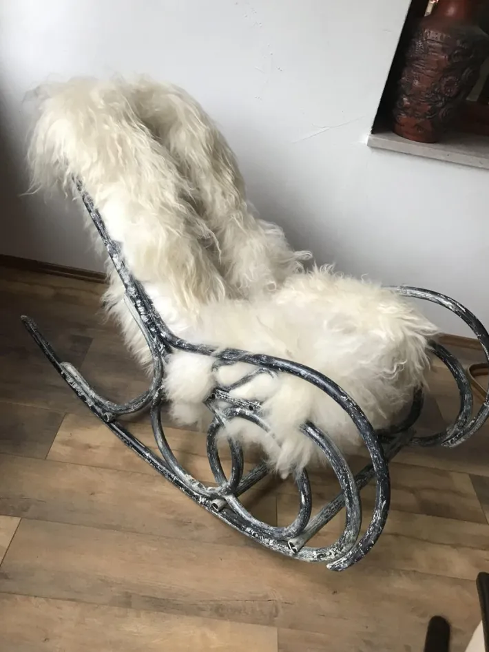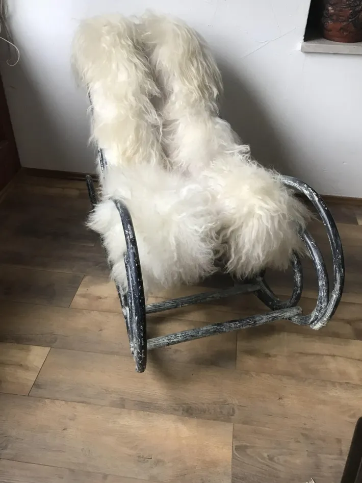 In 1860 for Thonet. This beautiful piece is finished with an ivory lacquer and reupholstered with a white colored long hair lamb fur.