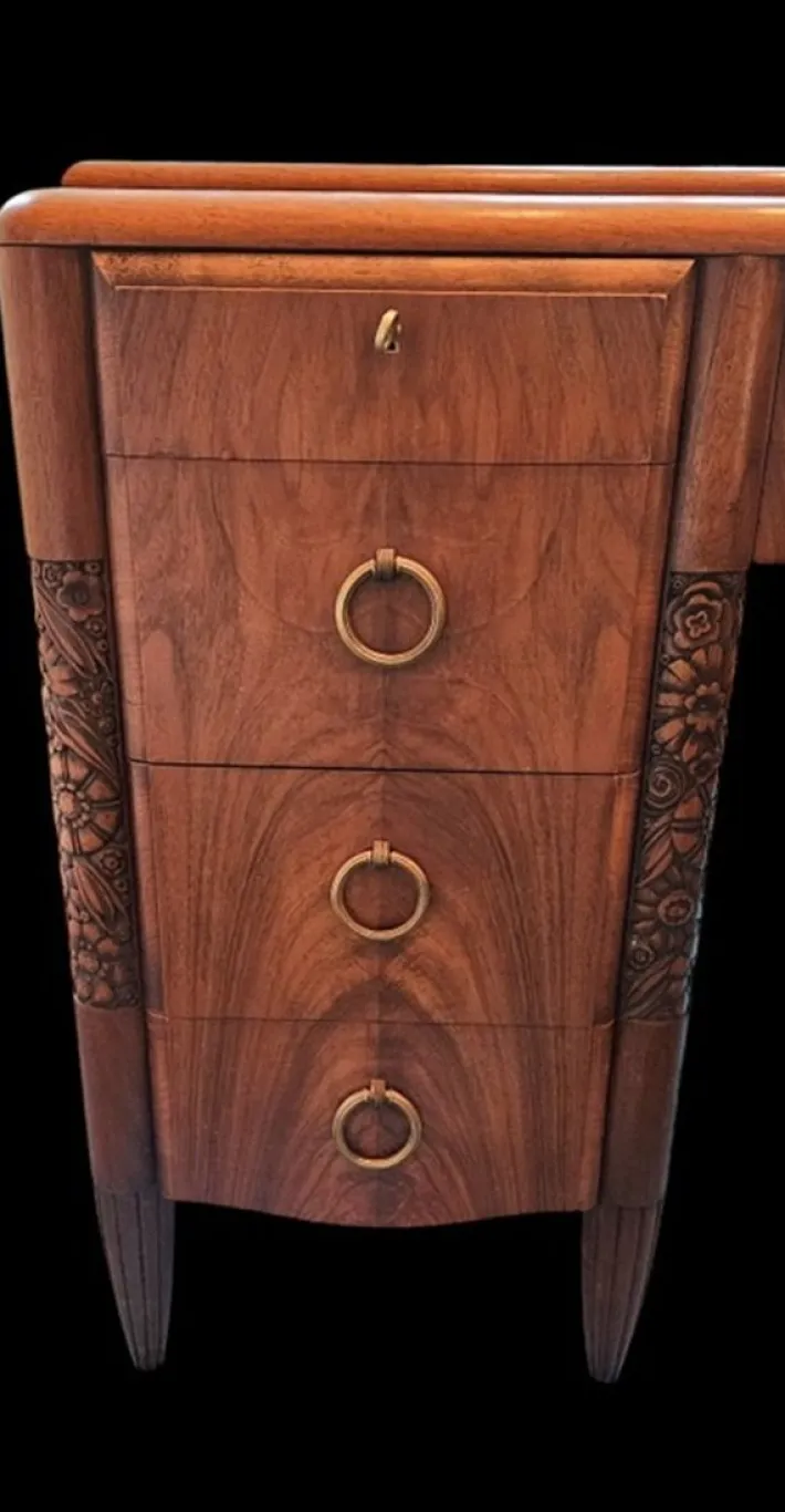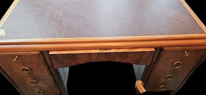 a desk, 4 drawers on each side, leather top, height 75cm, length 134cm, depth 70cm