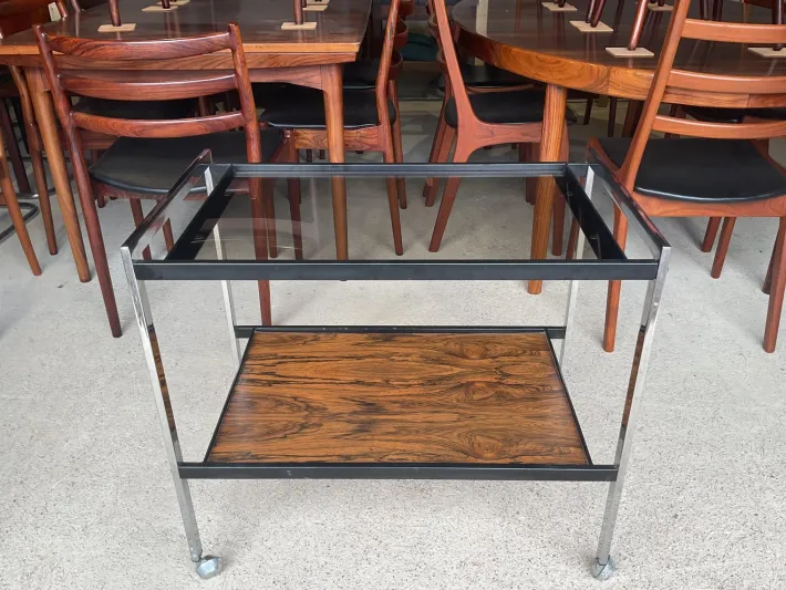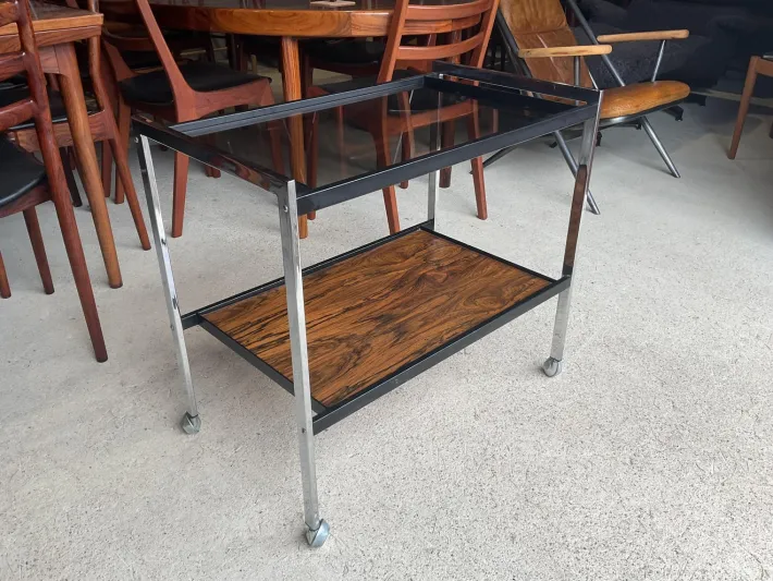 | Materials | Chrome Plating, Smoked Glass, Teak |