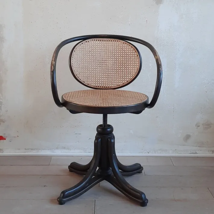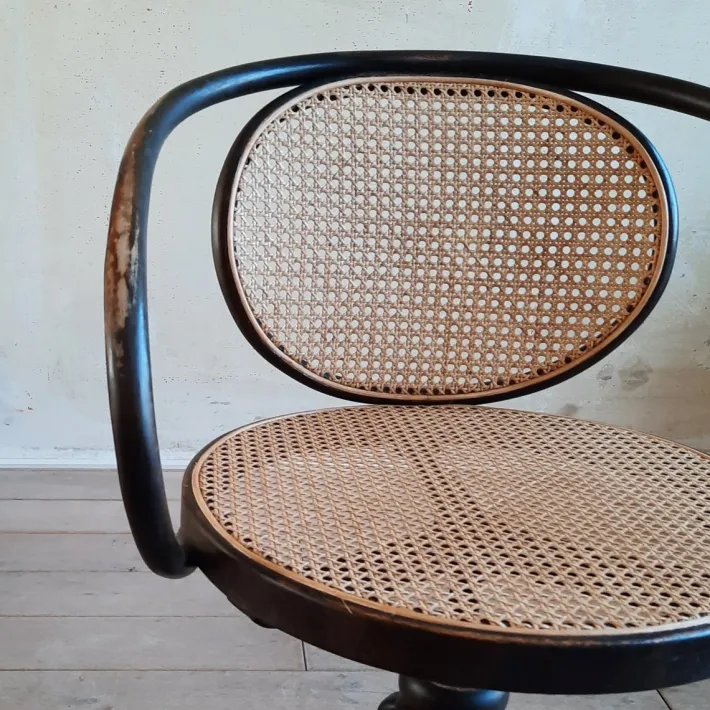 | Restoration and Damage Details | Patina consistent with age and use, Reupholstered, New rattan webbing in seat and backrest, Wear of the paint layer |