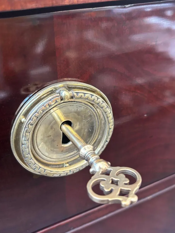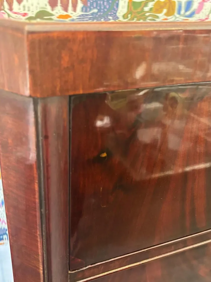 Mahogany, with original brass fittings