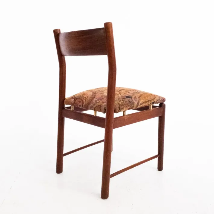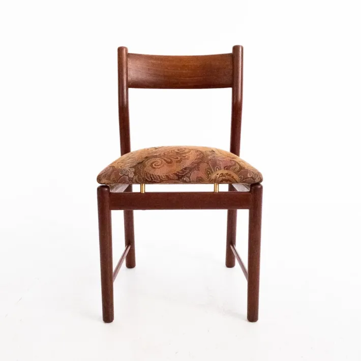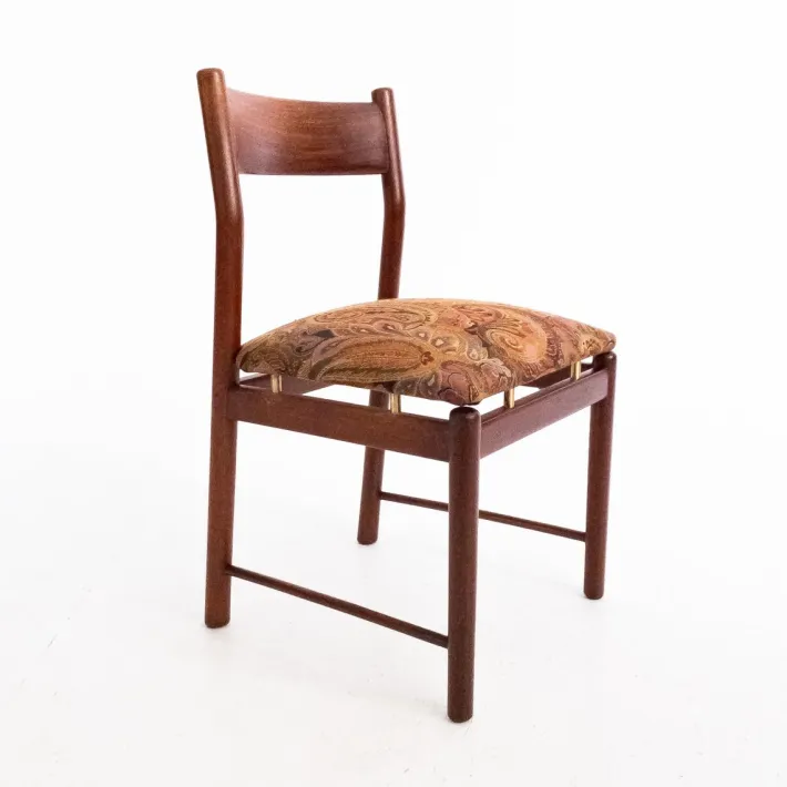 The shape of the chairs is designed for comfort and style. The padded seat is upholstered in a perfectly preserved paisley print fabric. Ergonomic details are combined with clean, rounded lines, creating a synergy between functionality and aesthetics. Tapiovaara’s mastery is reflected in his attention to detail and his ability to create pieces that stand the test of time, both in terms of design and durability.