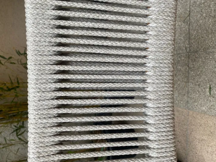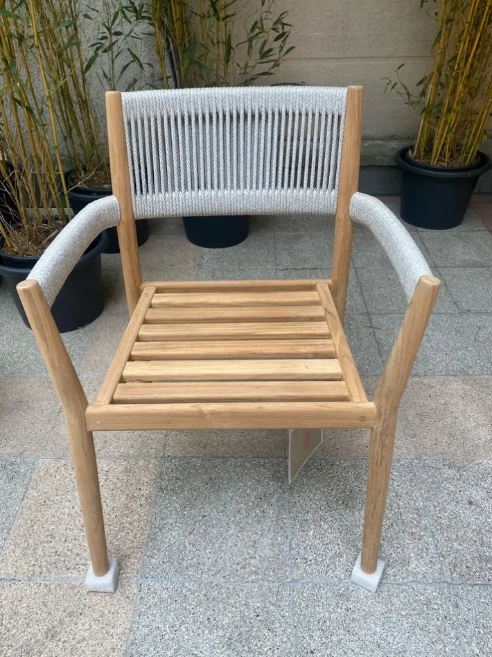 | Restoration and Damage Details | La chaise Dine Out est conçue par Rodolfo Dordoni pour Cassina avec une structure en teck massif agrémentée d’une corde en polypropylène gris tissée à la main autour des accoudoirs et de la partie supérieure du dossier.Le confort de l’assise est garanti! |