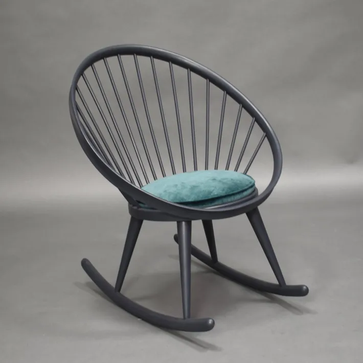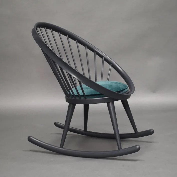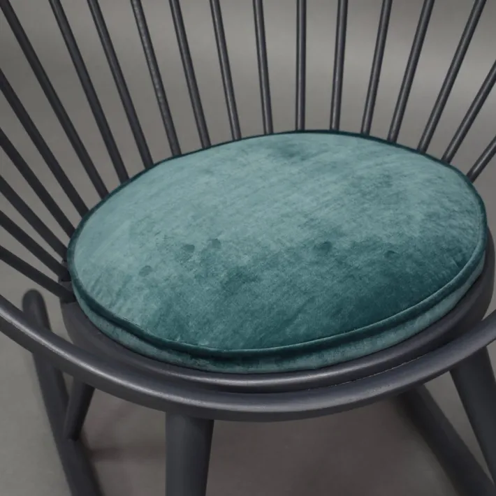 Material: New velvet fabric in aqua petrol colour / Lacquered wood (painted over in charcoal grey)