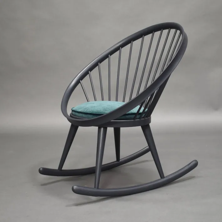 Condition: Good / New upholstery / The chair has been painted over in a charcoal grey colour