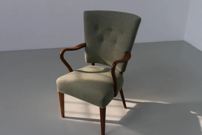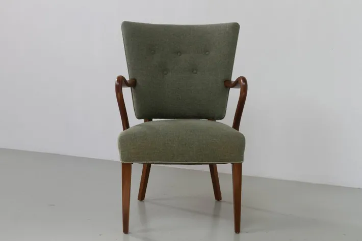 Very comfortable chair with eminent back support, even for tall people. Firm and supportive seat with original spring upholstery.