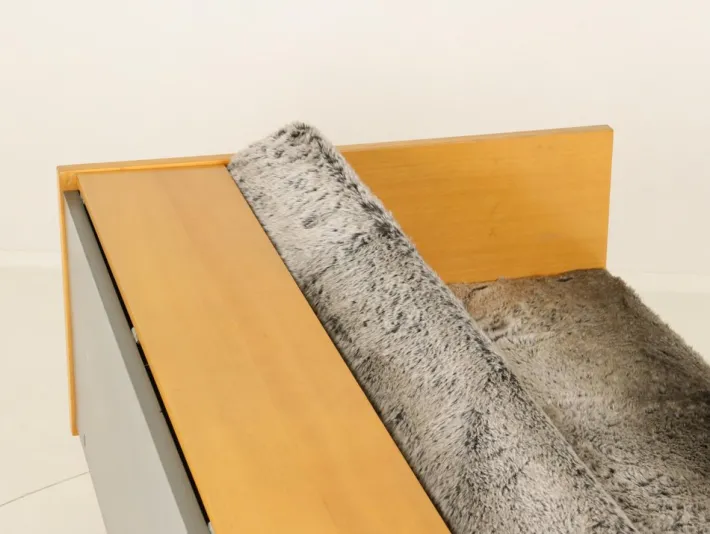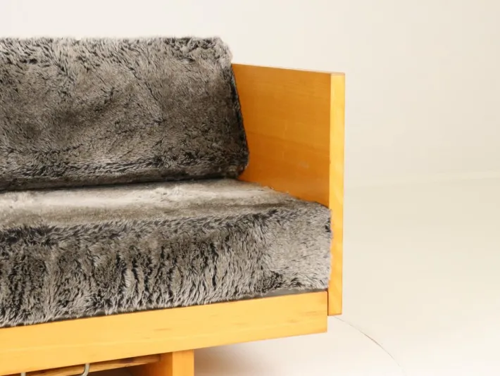 Wegner chose a warm material for the frame, in this case lacquered oak. He also thought about practicality and designed a very ingenious and easy system to convert the sofa into a double bed.