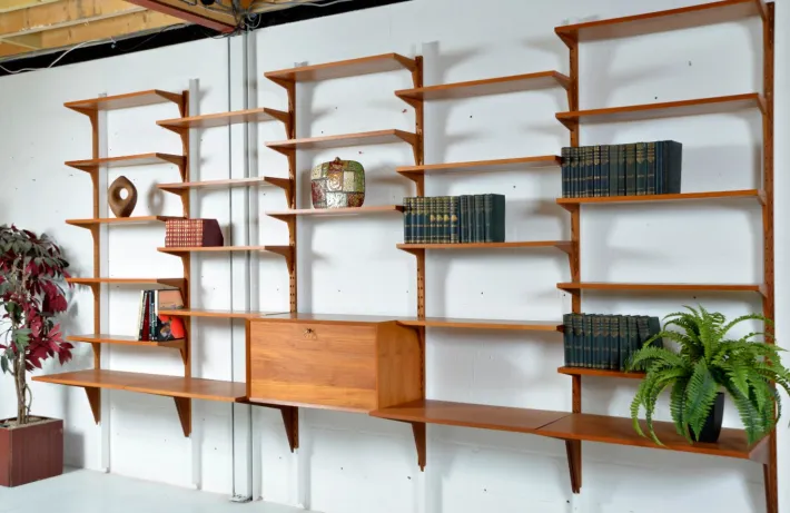 This is a really stunning wall system in wonderful original condition, which has been in the same house since new, and was the main bookcase in the reading room.