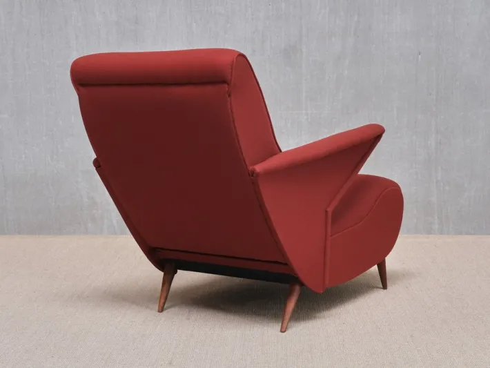 The model is documented in the leading reference book on Italian mid-century design Il Design Italiano Degli Anni ’50. No other examples of this model are known, and it was never put into serial production. The armchair offered here is therefore very likely the documented prototype.