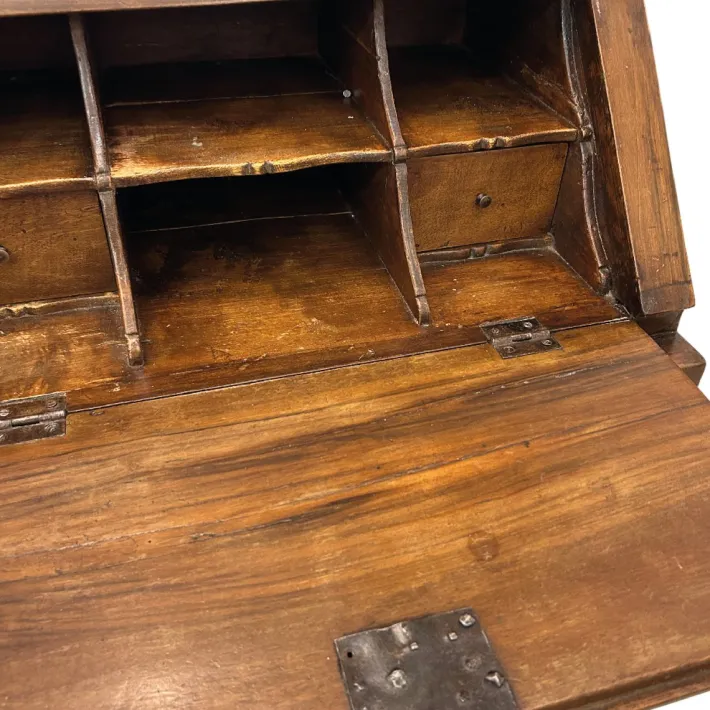 Originating from an exquisite French collection, this bureau is preserved in optimal condition, perfect for functional use or as part of living room décor, creating a pleasant and elegant atmosphere. It features original hardware, keys, and fittings from the period. Clean, straight lines are complemented by modulated detailing inside the drawers.