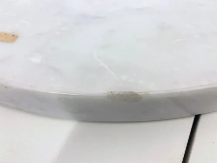 Good used condition. Light wear. A small chip on the underside of the removable tabletop.