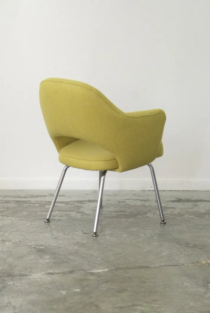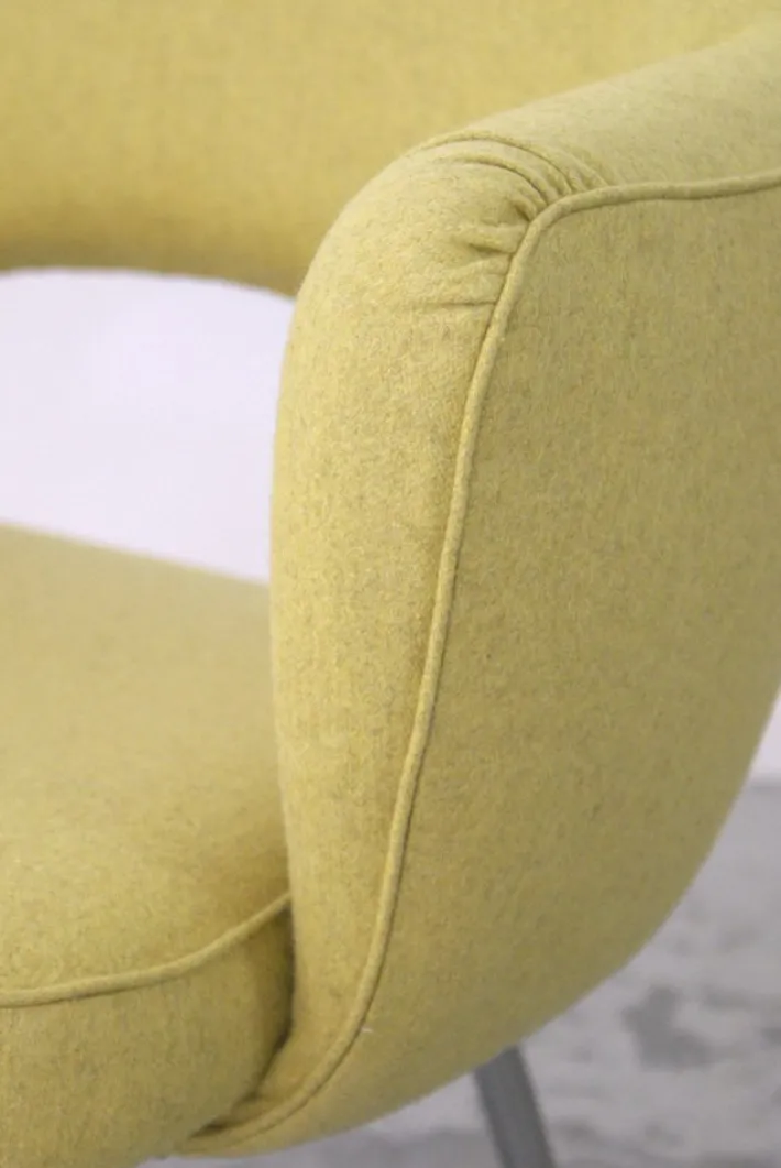 Chrome structure, fabric seat. Original pieces, completely reupholstered.