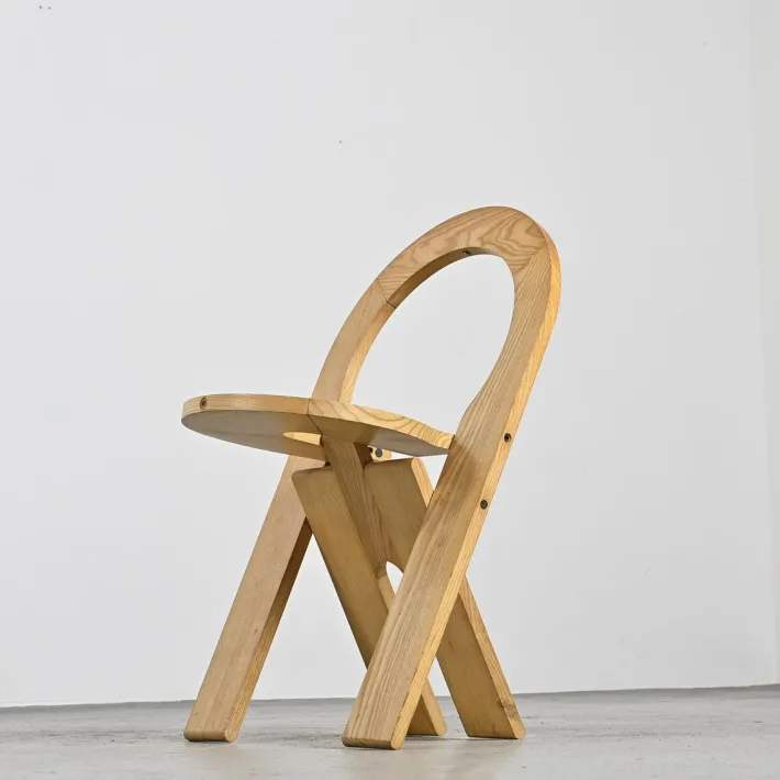 This iconic chair, the first version of the TS model, illustrates the ingenuity and minimalism of the French designer, pioneer of industrial design. Made from plywood and covered with an elegant oak veneer, it demonstrates Tallon’s attention to functionality and simplicity of lines. The ingenious folding system saves space while maintaining a harmonious visual balance.