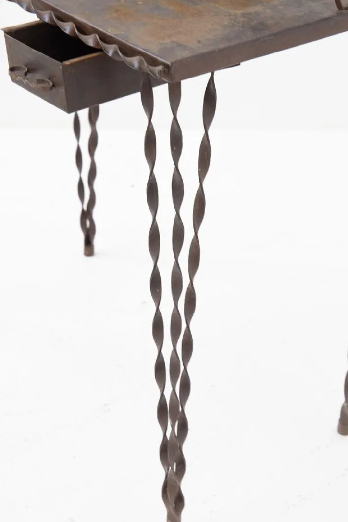 Above we find a rectangular wrought iron top also smooth, with an iron curl on the front, as if to adorn it. There are two small drawers under the top that are very useful.
