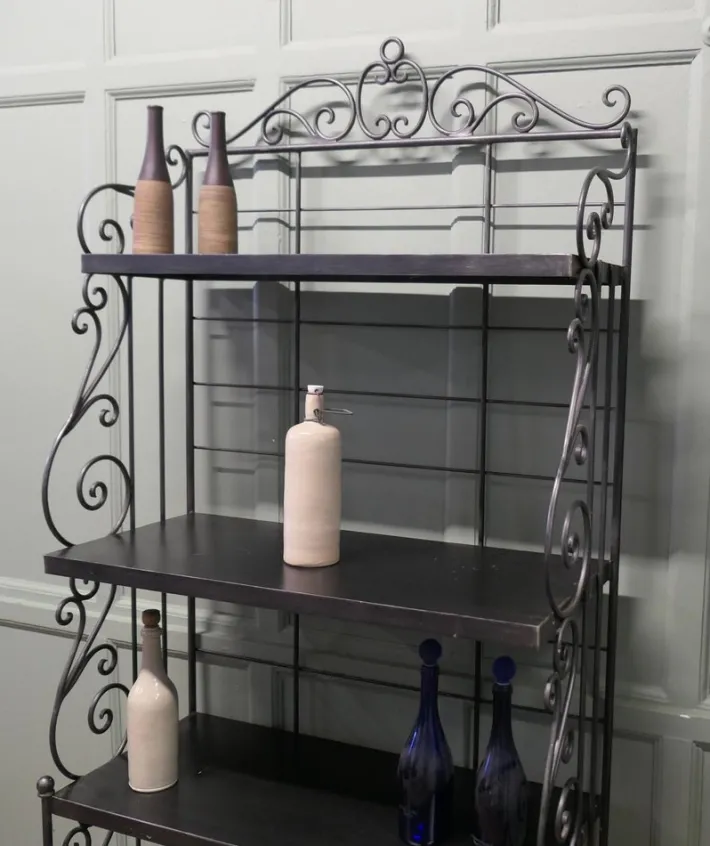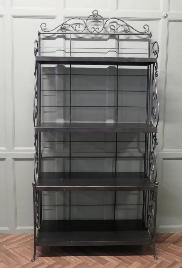This is the classic display piece we associate with those French Boulanger or Patisseries, it is made with wrought iron and has solid metal shelves