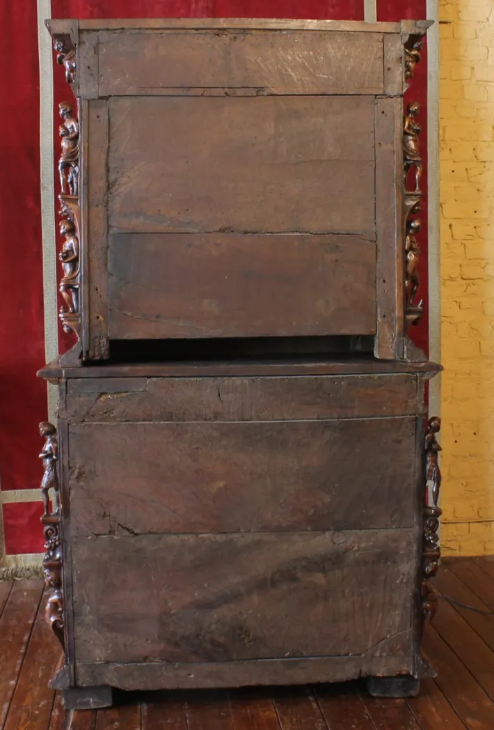 “A bambocci” cabinets appeared at the end of the 16th century around 1560 in Genoa, replacing chests. The so-called “a bambocci” cabinets are decorated with sculptures of a spectacular world of characters.