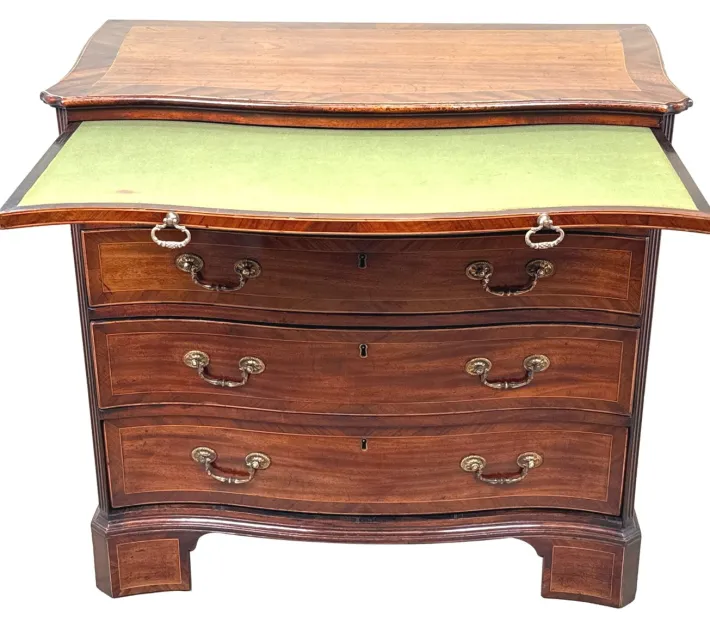 This very elegant and attractive georgian serpentine chest is constructed from richly figured, dense mahogany timbers and retains a superb colour and patina.