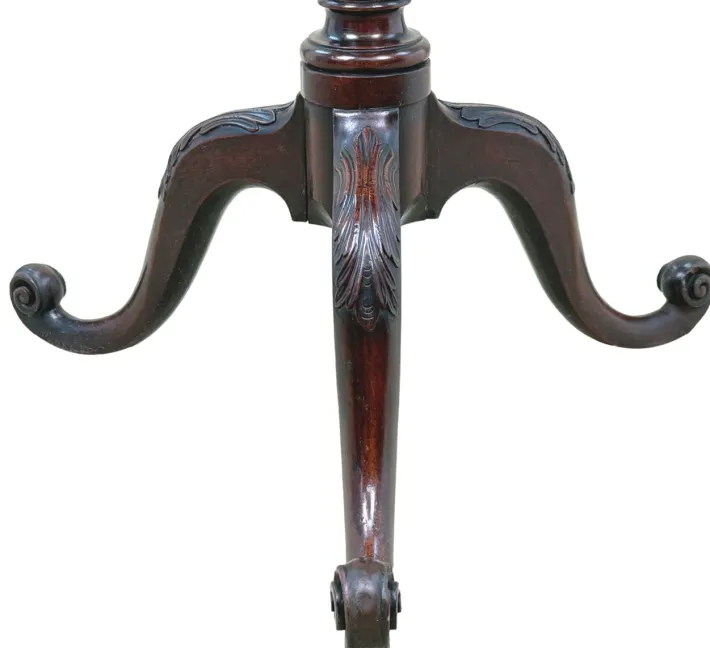 The table also boasts a very elegant column, again from rich timbers and a very elegant base indeed. The carved decoration to the top of each leg is a very classy feature and has real depth to it, as does the carving within the scrolling toes which manage to create a real addtional elegance when viewing the piece from afar.
