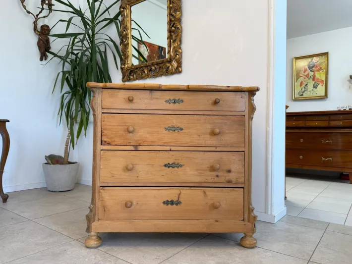 Very beautiful Wilhelminian-era chest of drawers with attractive wooden fittings. This chest of drawers is practical and functional – it was very beautifully and attractively crafted. This chest of drawers, dating from around 1875, is clean, sturdy, and in very good original condition. The drawers run smoothly; there is no key included! It smells fragrant inside. This is a beautiful original piece from the Wilhelminian era that you should treat yourself to!
