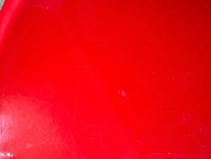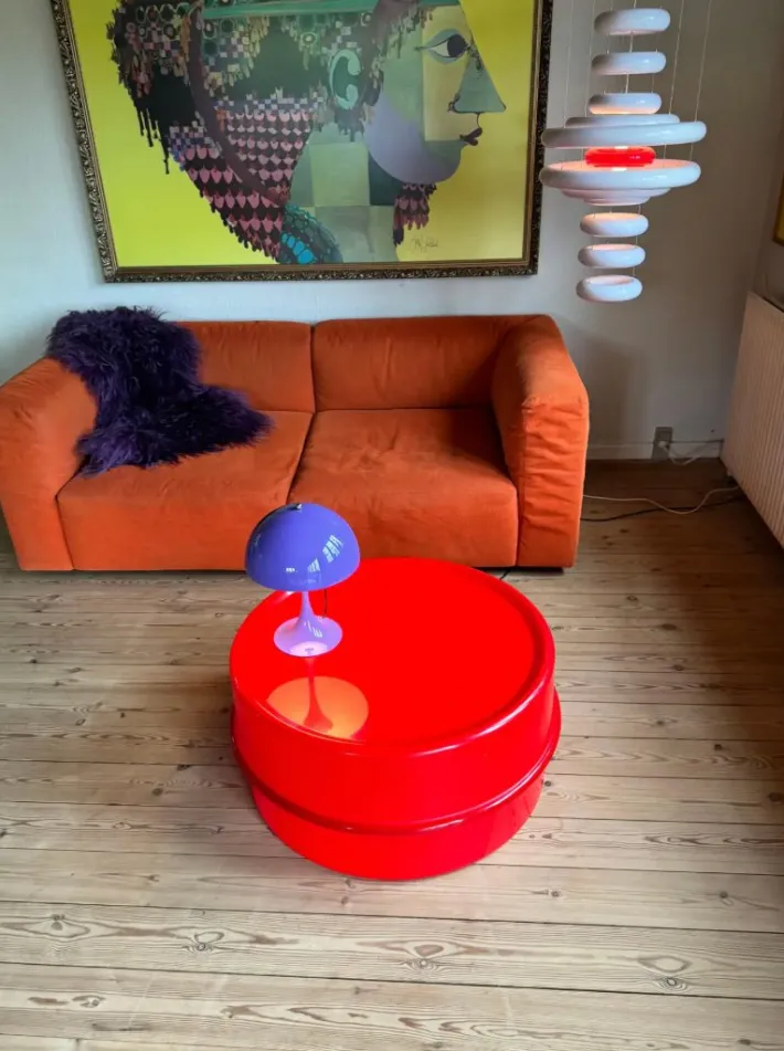 Made from red plastic this iconic coffee or rather large side table is a stunning design from one of Denmarks most spectacular architects.
