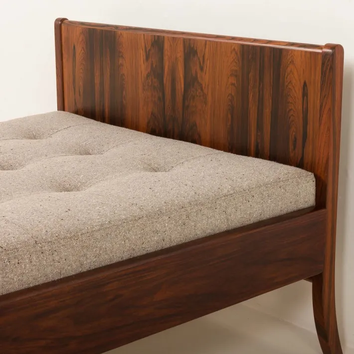 The daybed is in fantastic condition after renovation. The original wood frame has been cleaned and treated with professional compounds. The new foam inside provide contemporary comfort in vintage piece.