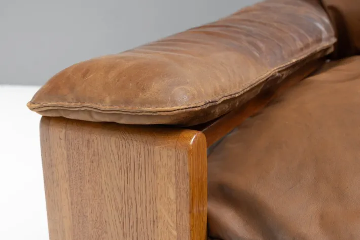 | Restoration and Damage Details | Light wear consistent with age and use, Patina consistent with age and use, Surface has been refinished, Model 757 sofa by Harry J M De Groot for Leolux. Solid chestnut frame and original patinated leather cushions. Dutch circa 1970. |