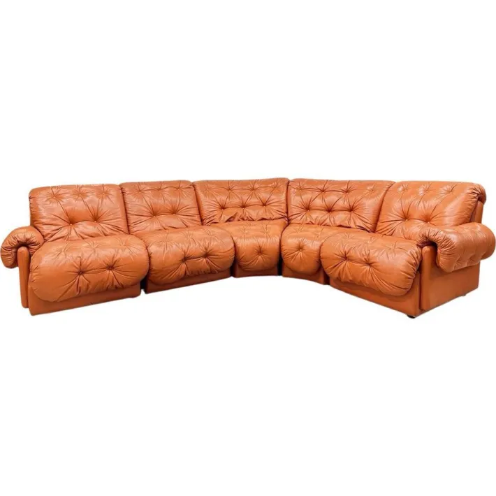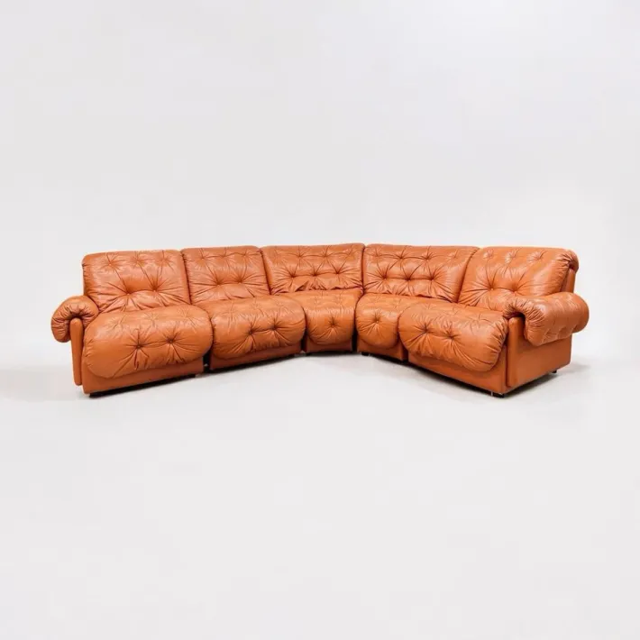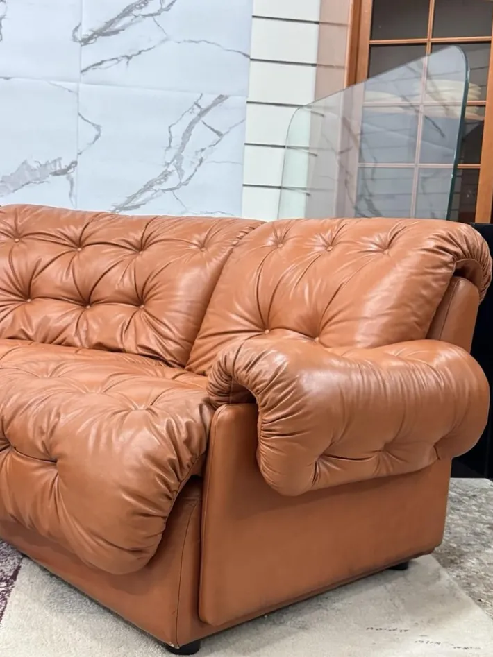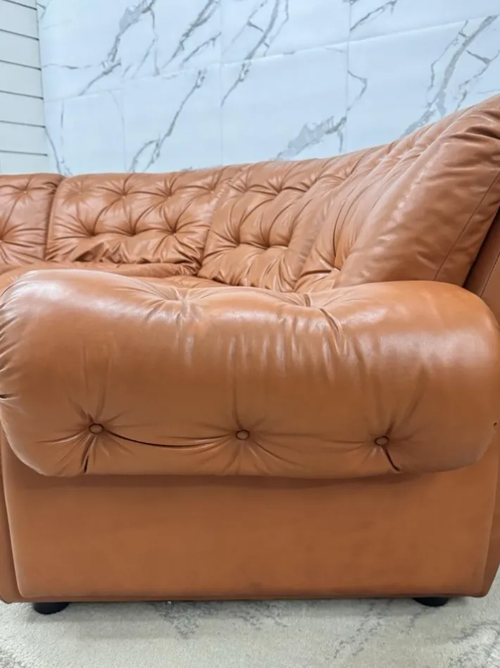 Condition: good overall condition, with normal signs of use consistent with age. The leather has a pleasant patina that adds to its vintage character. Height 76cm Width 320 cm Total depth 160 cm