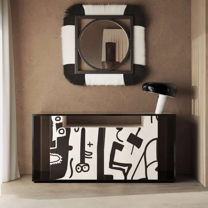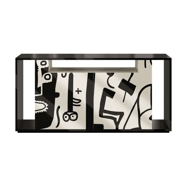 Materials:Front in Marquetry Gloss Black Bird Eye; White Maple Body in Black and Cream Lacquer Gloss