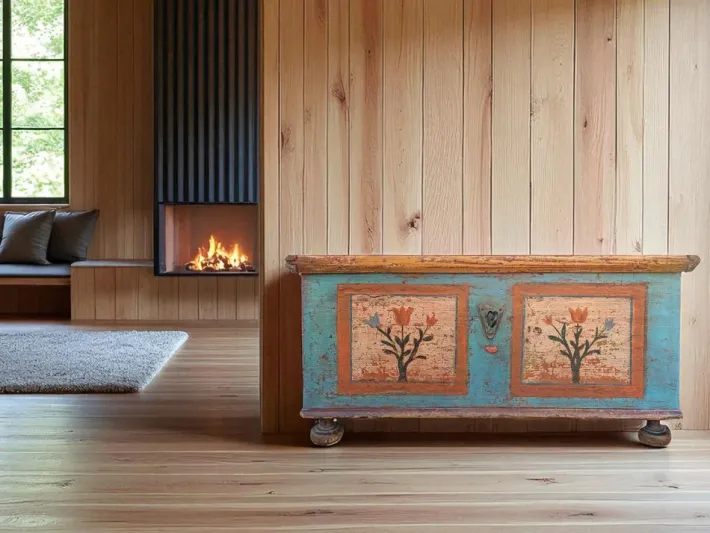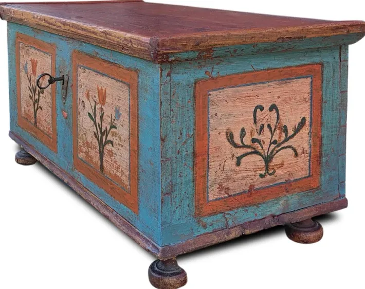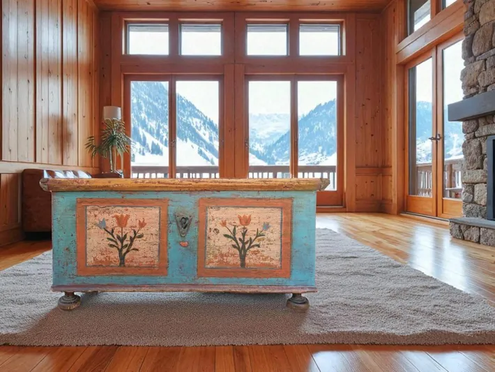 This chest, beyond its practical storage role, conveys strong symbolic and decorative value, reflecting the identity and traditions of Alpine households.