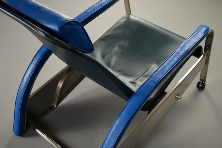 Stylish, modern, sleek and extremely comfortable lounge chair. Of this rare chair designed by Jean Prouvé, only 100 pieces were produced. In the 1980’s this chair went into reproduction by Tecta. It’s made out of metal with leather seating and arm and headrest. This iconic design has an unique adjustable lounge system. The perfect chair for the Sunday afternoon siësta.