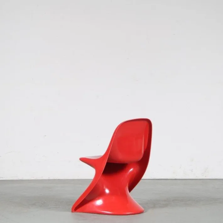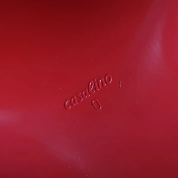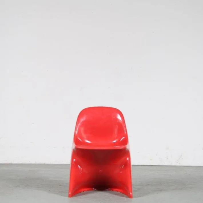 These chairs are made of high quality red molded plastic. This is a style that is typical for mid-century design and makes the Casalino an iconic piece that has been famous since it’s introduction in 1970! They are official Casala productions and marked underneath the base, as shown in photos. The bright red colour is very appealing and is a great contribution to the style of the piece. It would make a lovely addition to the children room, or any other space! They can be placed individually to add a nice touch to the decor or can be used in any other combination, as well as with the other available colours! The chair is single molded with an organic seat and back and a base that relies on a wonderful counter balance design.