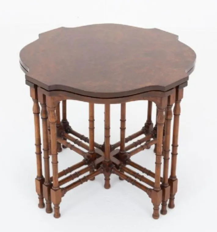 This quality nest of tables are raised upon turned legs with turned under stretchers