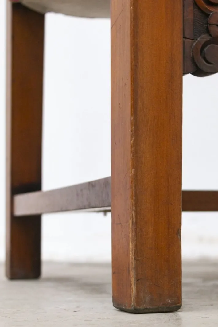 Made of solid walnut, they feature a naturalistic decoration on the lower band and curled armrests supported by turned columns.