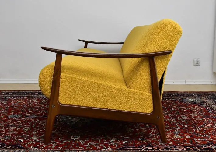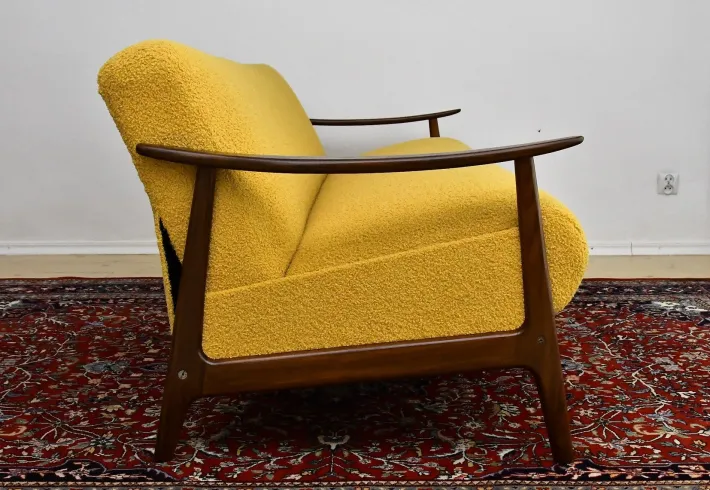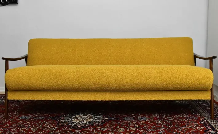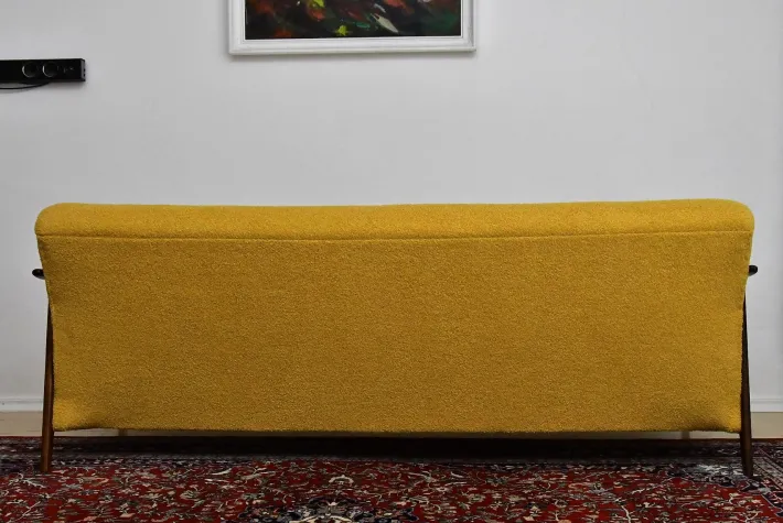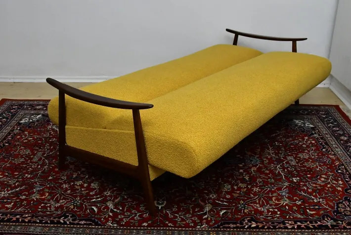 Pamono Scandinavian Foldable Teak Sofa in Yellow Bouclé, 1960s Sale