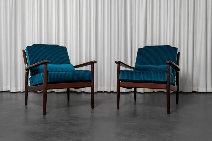 These armchairs are in excellent vintage condition and show wear and patina consistent with age and use.