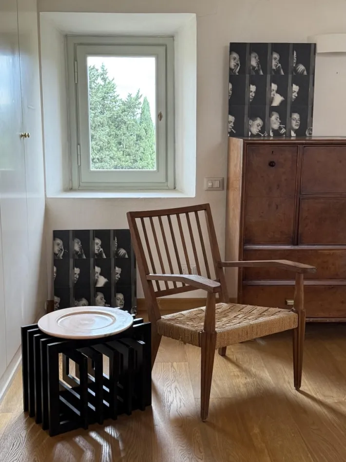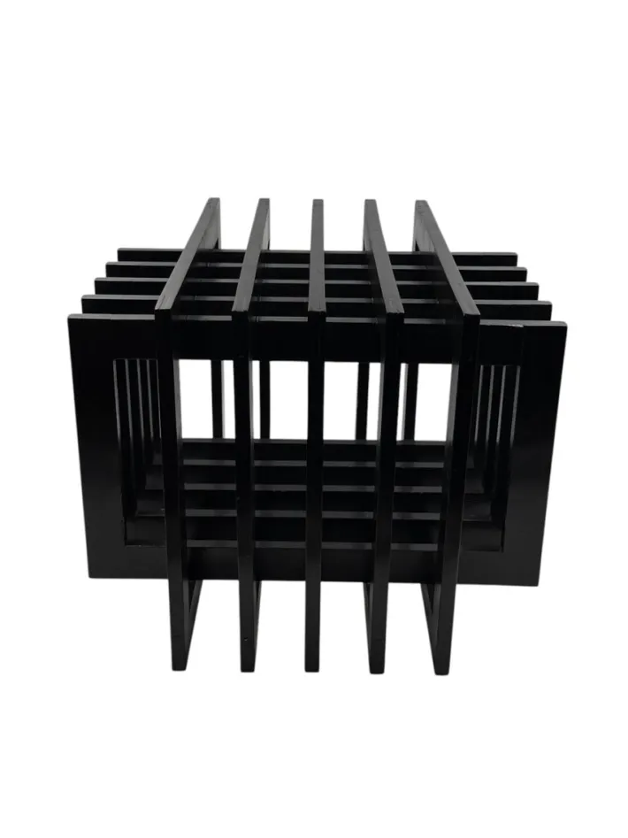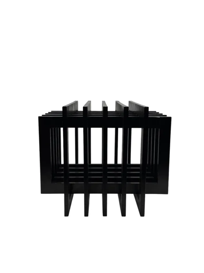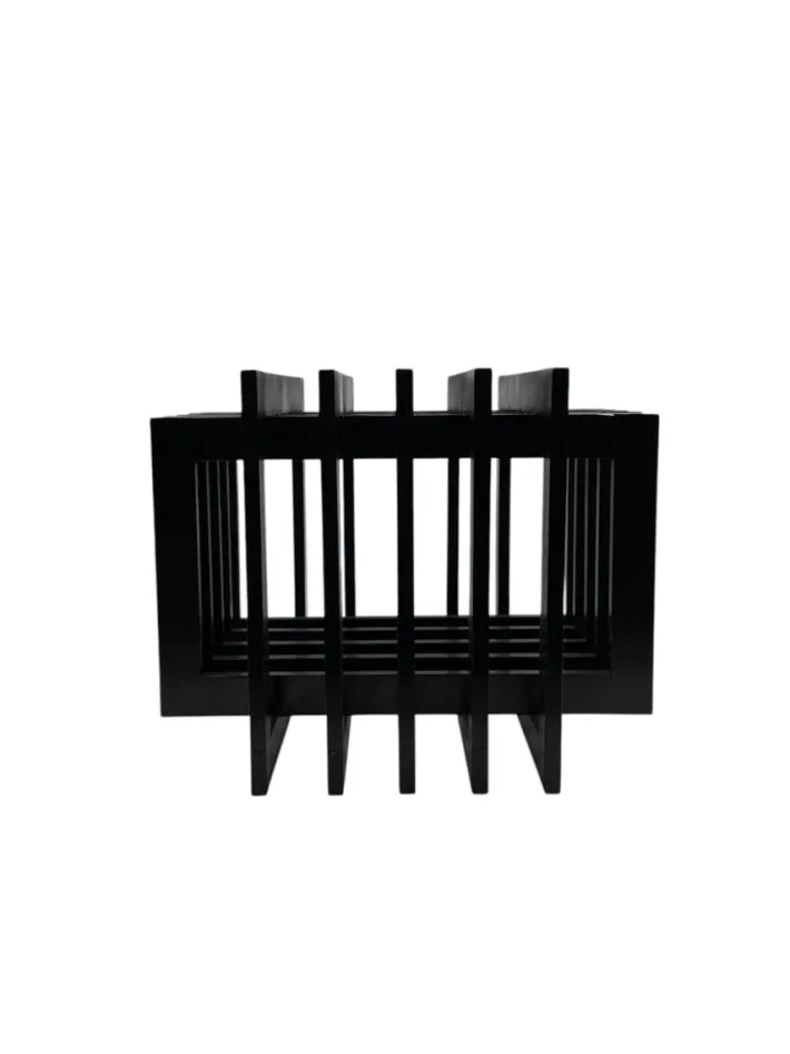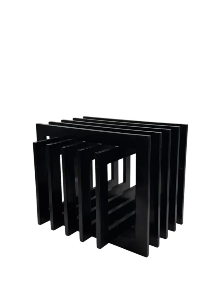 The object can be used as a simple floor or table sculpture, as a side table with a glass shelf or tray on top, or as a magazine/book holder.