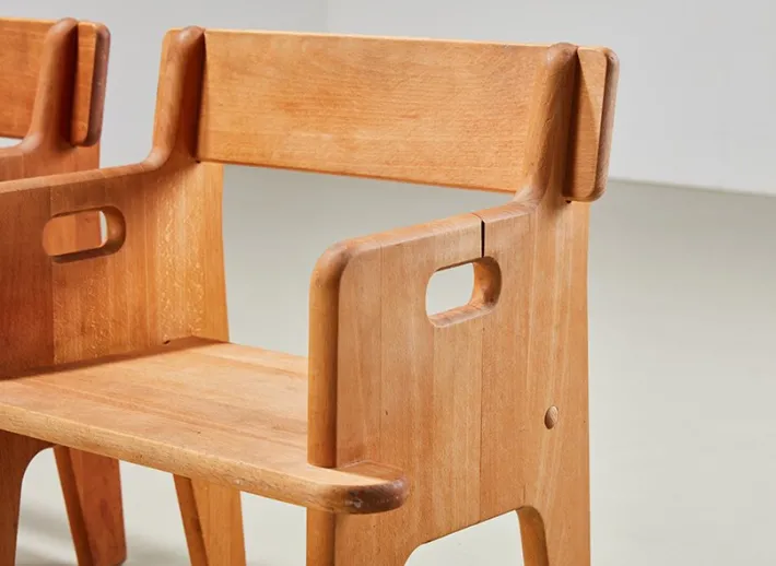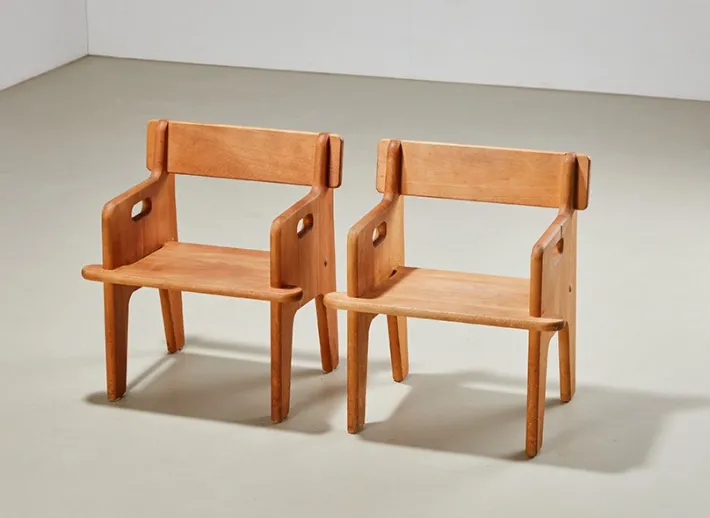 The chair was designed in 1944 as a christening gift for the son (Peter) of his friend and fellow designer Borge Mogensen. Designed as a life-size three dimensional puzzle, the kids chair is easily assembled without then use of tools.