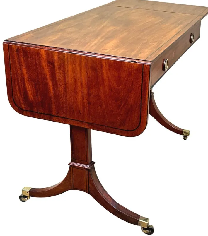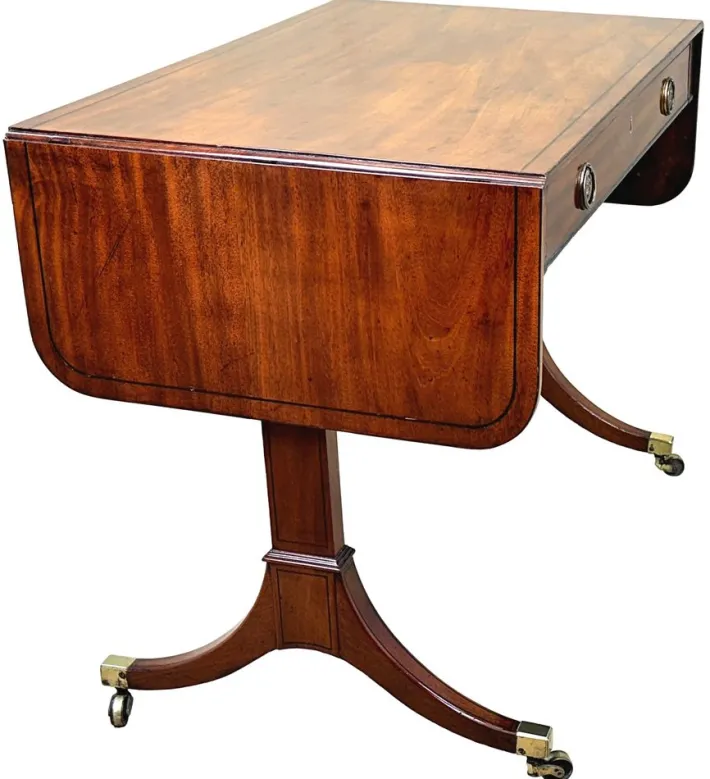 Sofa tables were relatively commonly found throughout the 18th and 19th centuries and as the name suggests they were originally designed to sit behind a sofa, although a common misconception is that they were meant to butt right up against the sofa itself.
