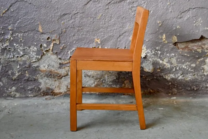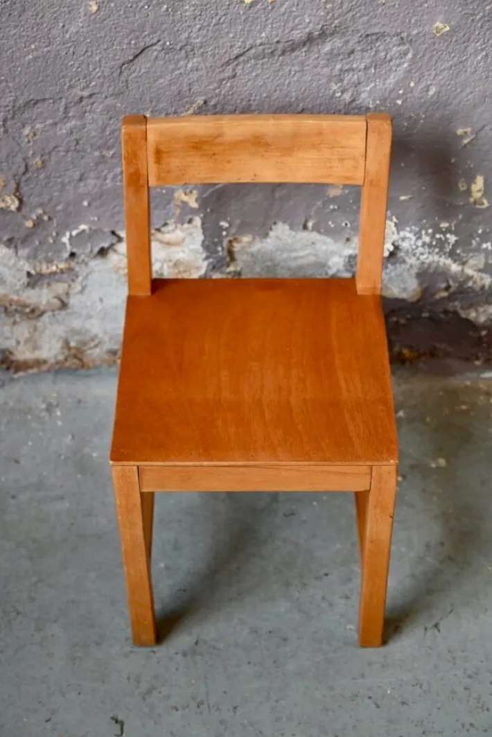 The chair is made of light-stained wood. In very good condition, it is full of charm and softness. Stable and very sturdy, it is suitable for children from 18 months.
