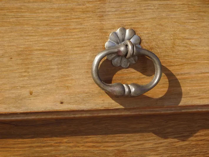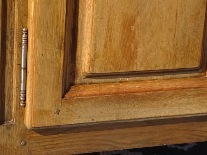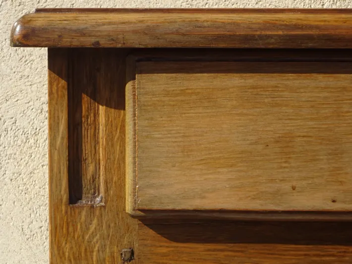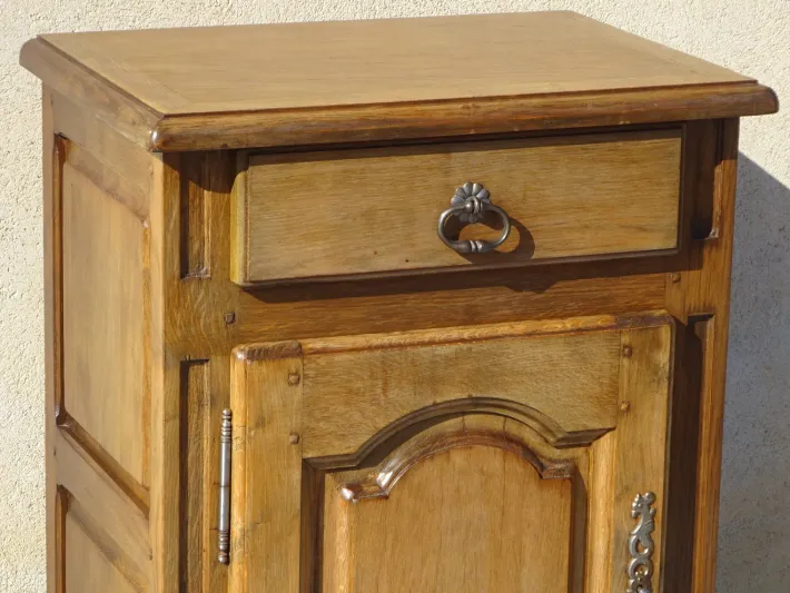 Small rustic cabinet of traditional manufacture, from the 70s/80s, from a village house in the south of France (12). Solid oak fronts and sides. Antique stain, nuanced by time.