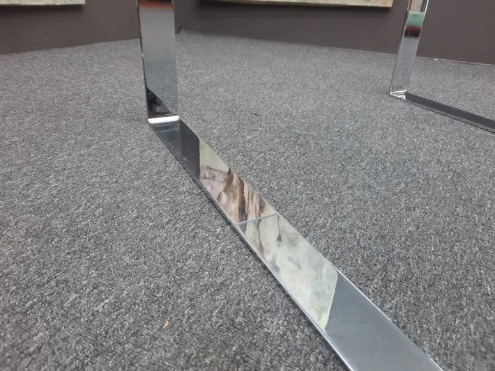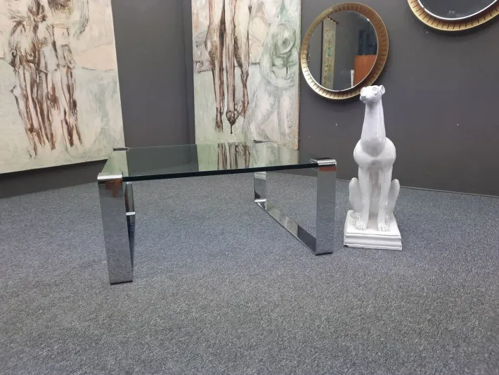 The solid, curved chrome frame makes this coffee table a real eye-catcher.