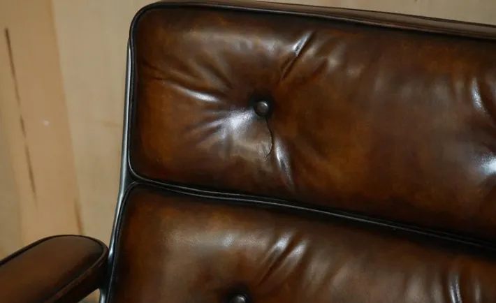 This chair has the early and Original Herman Miller 1960’s stamped base which has never been removed, the leather has been totally restored to include being washed back, hand dyed six times, antiqued, sealed waxed down and polished, this is the only chair in the entire world with this exact colour finish, there are no others and there never will be