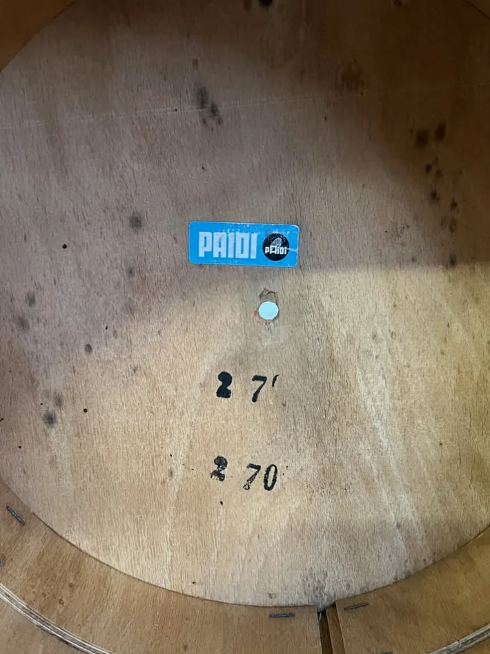 Production ceased in 1971. Today they are rare and sought after because not many survived and are becoming a true collectors item. The chair we have for sale was shipped to Germany and sold by the German Paidi: a well known distributor for children’s furniture (see original label).