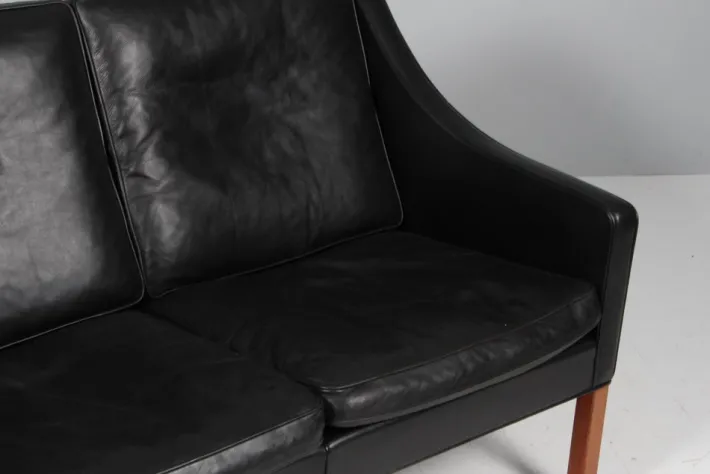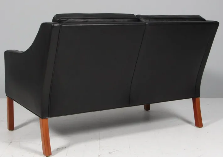 Pamono Two-Seat Sofa in Black Leather by Børge Mogensen for Fredericia Hot